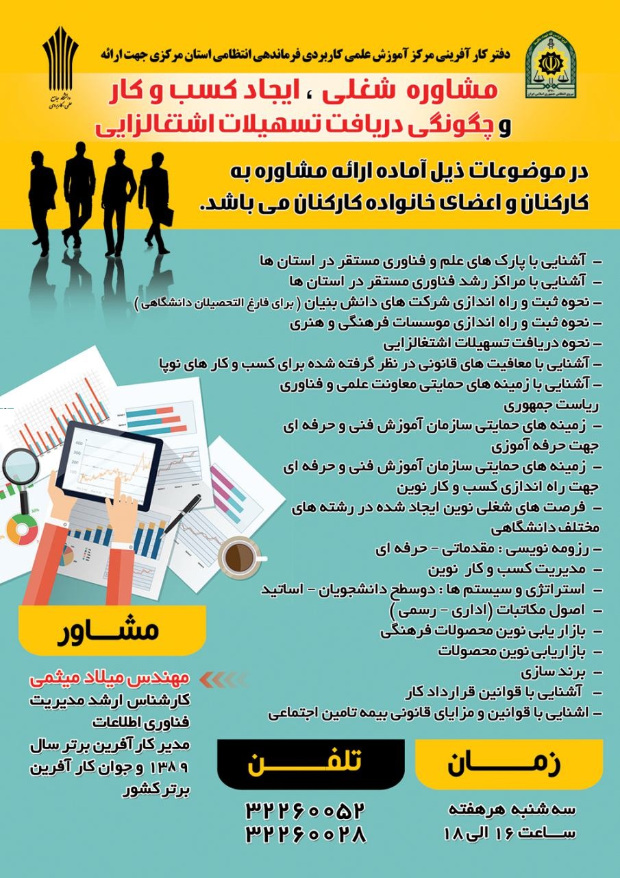 مهرماه سالروز فرارسیدن تاسیس دانشگاه جامع علمی کاربردی مرکز آموزش علمی کاربردی فرماندهی انتظامی استان مرکزی اقدام به راه اندازی دفتر کارآفرینی نموده است.