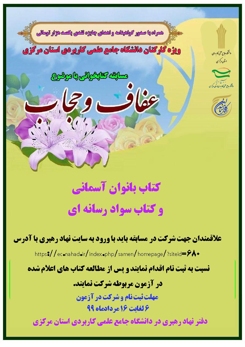مسابقه کتابخوانی با موضوع حجاب و عفاف در دانشگاه جامع علمی کاربردی استان مرکزی برگزار می شود
