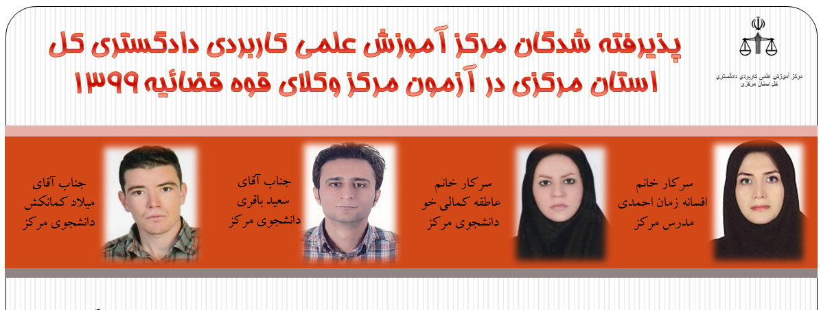 دانش آموختگان و مدرسین مرکز آموزش علمی کاربردی دادگستری کل استان مرکزی، در آزمون مرکز وکلای قوه قضائیه خوش درخشیدند.