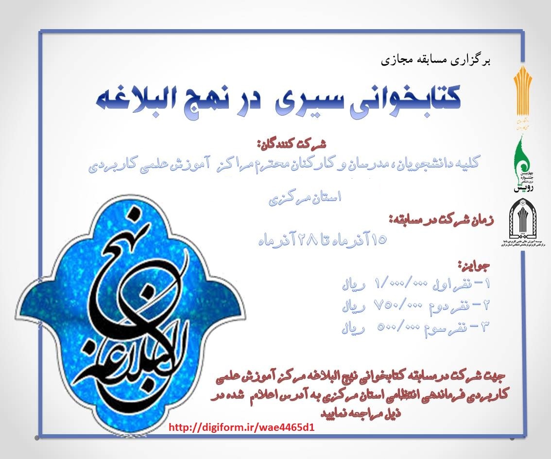 مسابقه کتابخوانی سیری در نهج البلاغه ویژه دانشگاهیان دانشگاه جامع علمی کاربردی استان مرکزی برگزار می شود