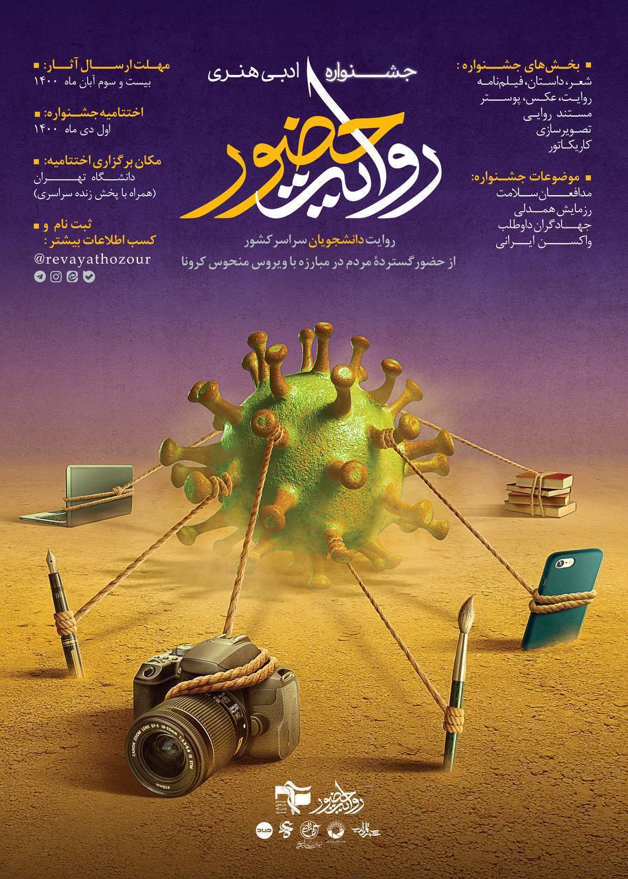 این جشنواره که توسط بسیج دانشجویی دانشگاه تهران با همکاری سایر تشکل های دانشجویی دانشگاه های سراسر کشور و با حمایت معاونت فرهنگی و اجتماعی دانشگاه تهران، معاونت فرهنگی دانشجویی وزرات بهداشت، درمان و آموزش پزشکی، معاونت فرهنگی سپاه پاسداران انقلاب اسلامی، سازمان تبلیغات اسلامی و بسیج اساتید کل کشور، اول دیماه 1400 در محل دانشگاه تهران همراه با پخش زنده سراسری از رسانه ملی برگزار می شود، شامل بخشهای شعر، داستان، فیلم نامه، روایت، عکس، پوستر، مستند روایی، تصویرسازی و کاریکاتور با موضوعات مدافعان سلامت، رزمایش همدلی، جهادگران داوطلب و واکسن ایرانی است که علاقمندان به شرکت در آن می توانند آثار خود را تا 23 آبان ماه 1400 به دبیرخانه ارسال کنند.