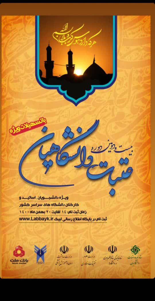 به گزارش روابط عمومی دانشگاه جامع علمی کاربردی استان مرکزی، ثبت نام بیست و دومین دوره عتبات دانشگاهیان با ارائه تسهیلات ویژه از 14 بهمن آغاز شده است.