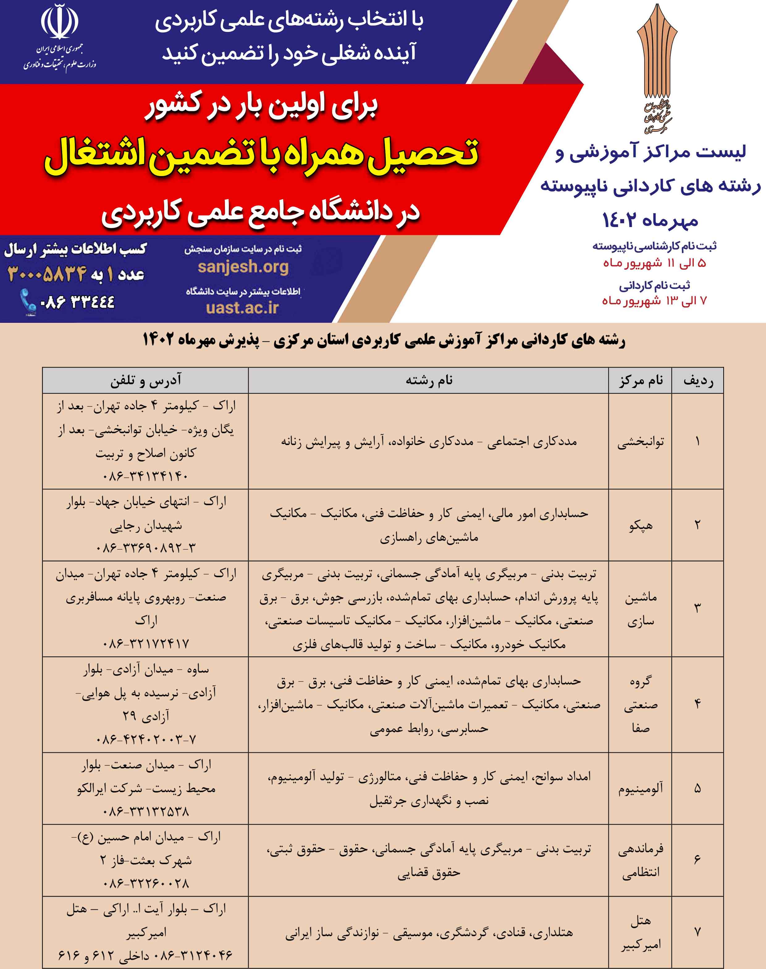 لیست مراکز و رشته های کاردانی مهرماه ۱۴۰۲ تعداد بازدید:۹۳ ارسال به دیگران نام شما ایمیل شما ایمیل دریافتکننده ارسال انصراف
